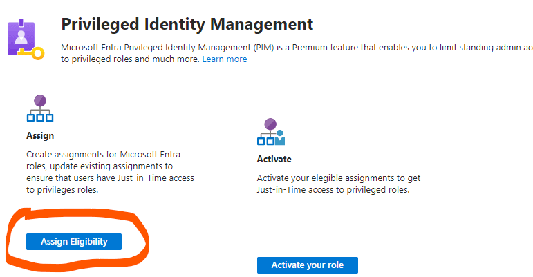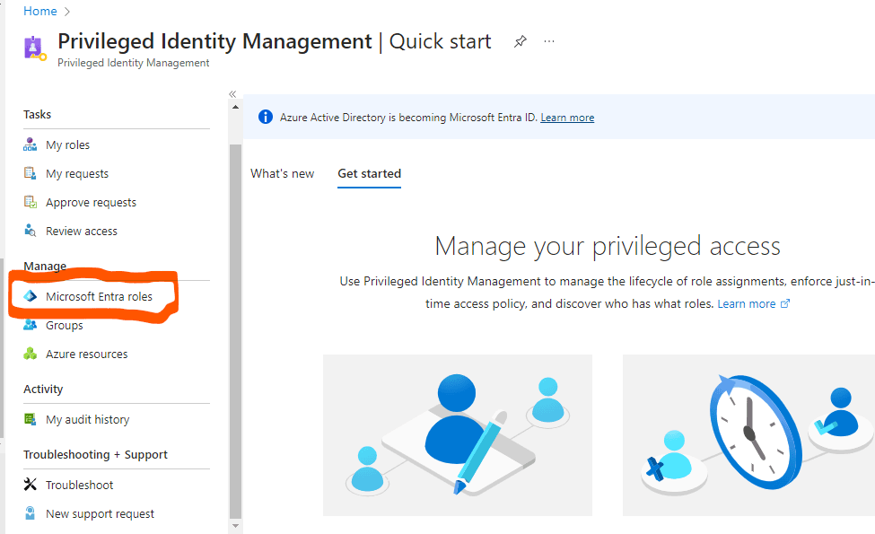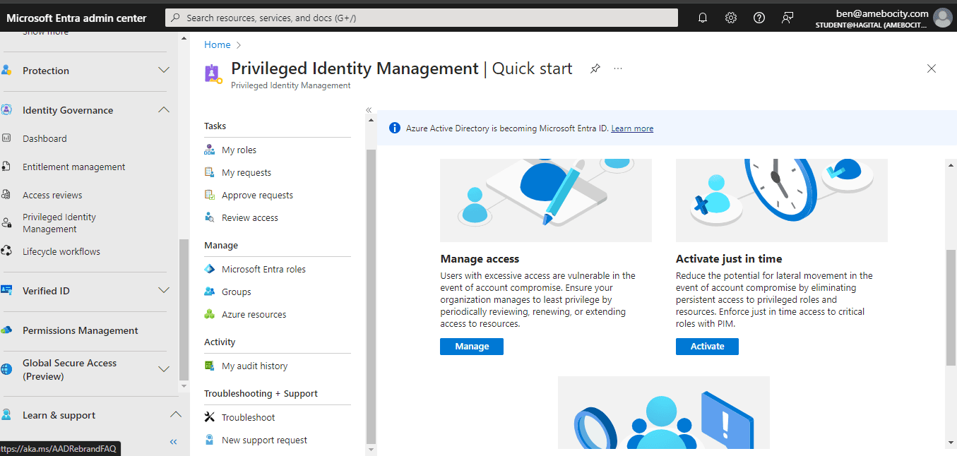 - I navigated to “Identity Governance” and clicked on “Privileged Identity Management (PIM)”.