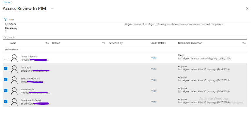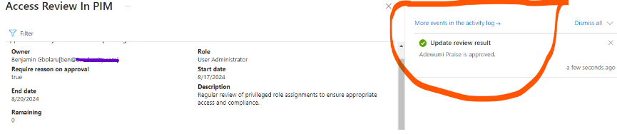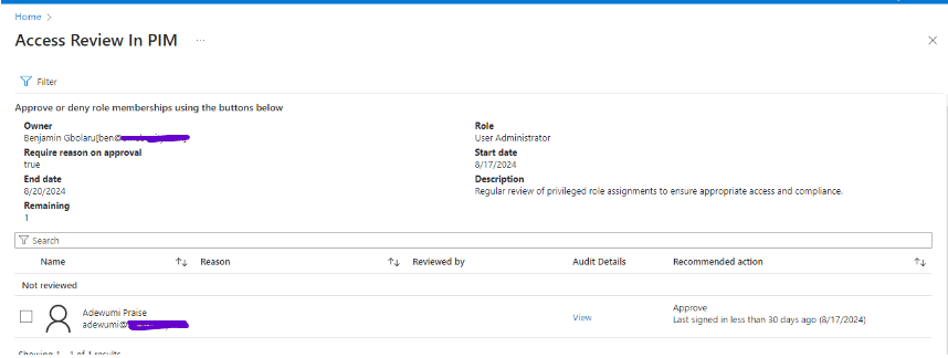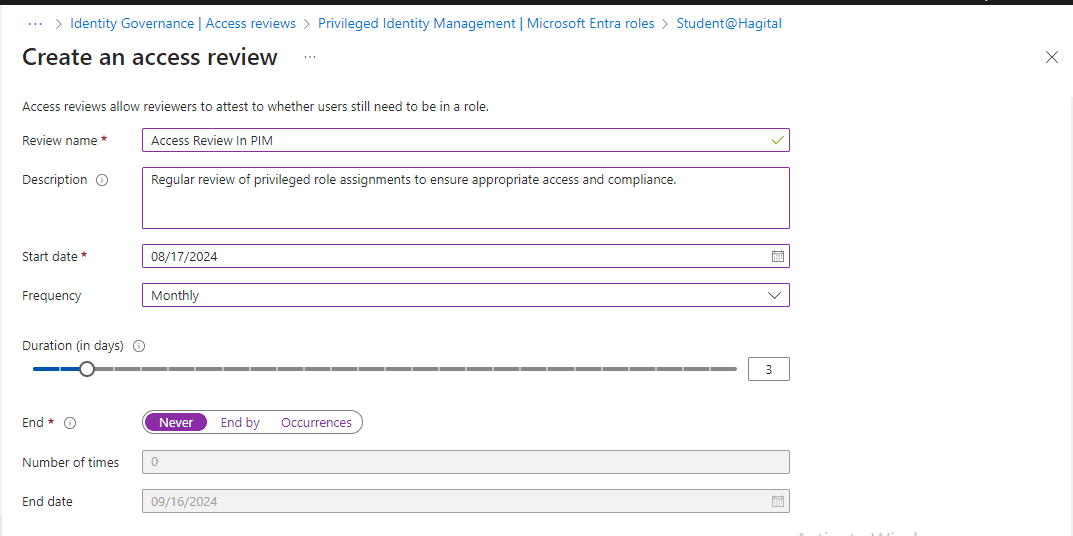 - Review Name: Access Review in PIM