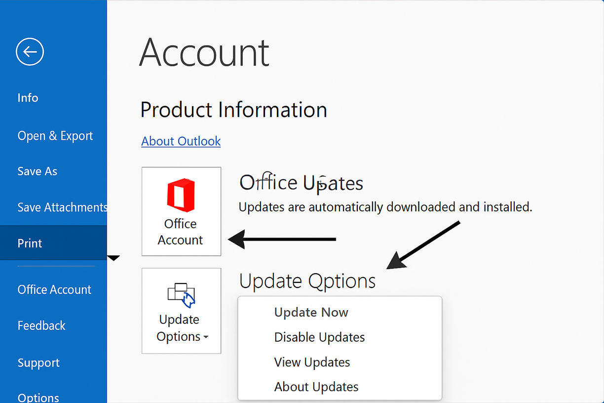 Outdated software often causes Outlook problems. Microsoft regularly releases fixes for known issues.