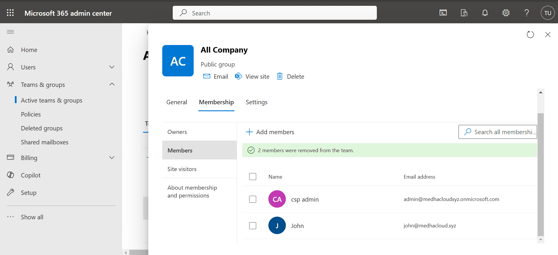 From the list of active groups, find and select the Microsoft 365 Group from which you want to remove members. This will open the group’s settings page.