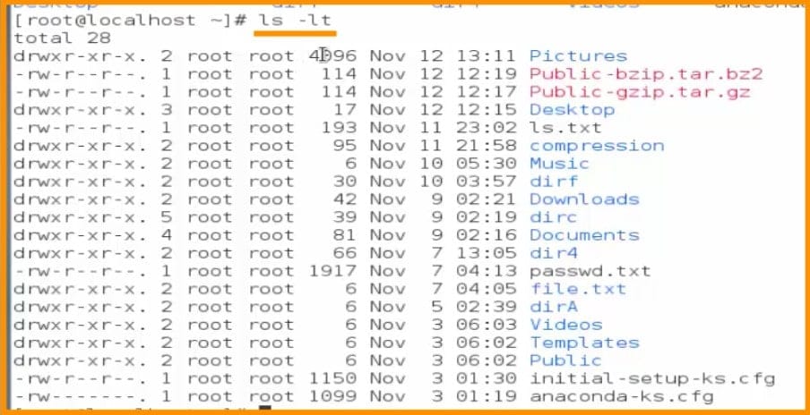 List files and directories in order from Newest to Oldest.- Type the command ls – t and press Enter