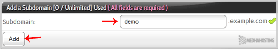 4. Under the “Add a Subdomain” tab, enter your subdomain name in the “Subdomain” field.