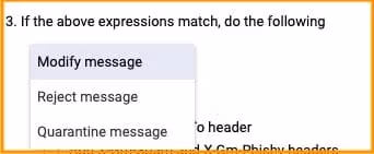 If the mails match the above expressions, you can either choose to Modify, Reject or quarantine the message.
