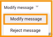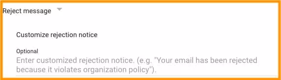 If the mails match the above criteria, you can choose to modify or reject the mail. To reject the mail Select Reject from drop down menu.