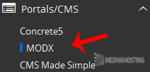 4. On the left side of your screen you should locate the “Portal/CMS” category. Click on it and then click on the “MODX” link that will appear.