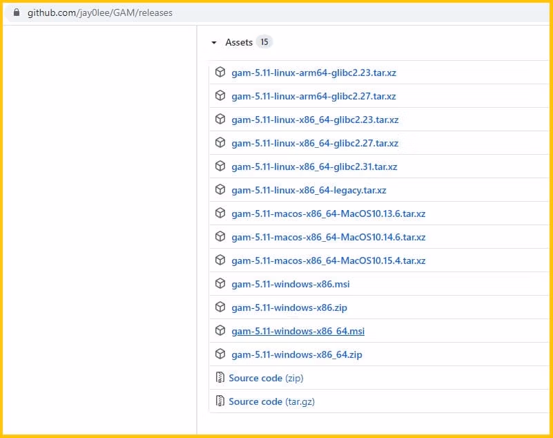 • Head to the Releases page and download the latest Windows MSI version of GAM. The filename should look like gam-4.02-windows-x64.msi (where 4.02 is the latest GAM version).